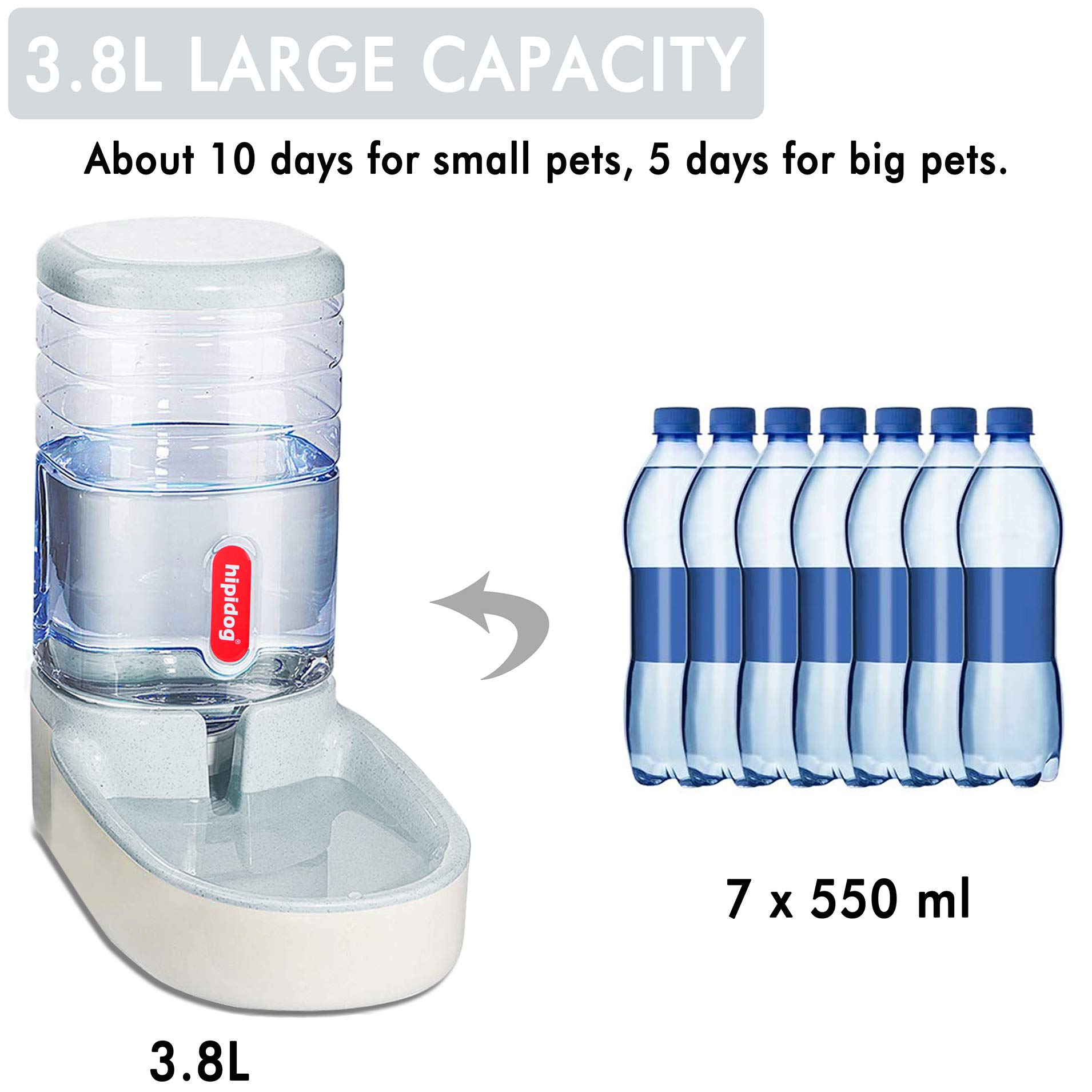 - 2.Size and Capacity: both feeder and waterer measures 31x17x22cm;large capacity 3.8L, can last about 7days for small pets,3 days for big pets, you can rest assured to go on vacation, work, party, do not have to worry about pets will be hungry.