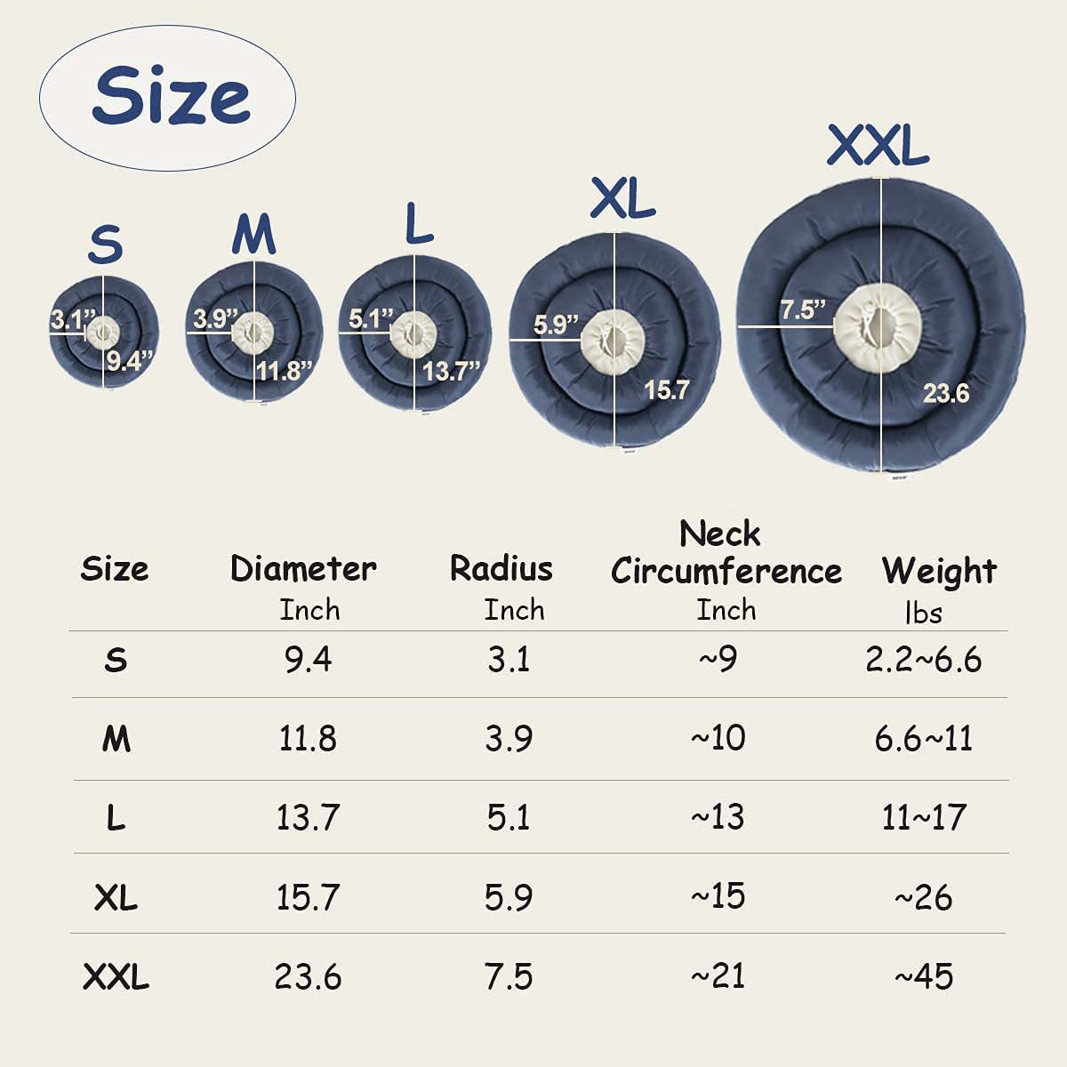 • SIZE GUIDE: PLEASE, refer to the size info image before purchasing. 1) Measure your pet's length from neck to the paws, standing upright and looking straight up. 2) Measure the product's radius and add 2 inches to the radius you get 3) Compare the length of your pet from neck to the paws and the length you get from the radius plus 2 inches. Product's radius + 2 inches should be equal to the length from neck to the paws. If you feel like your pet is in between sizes, choose the bigger one.